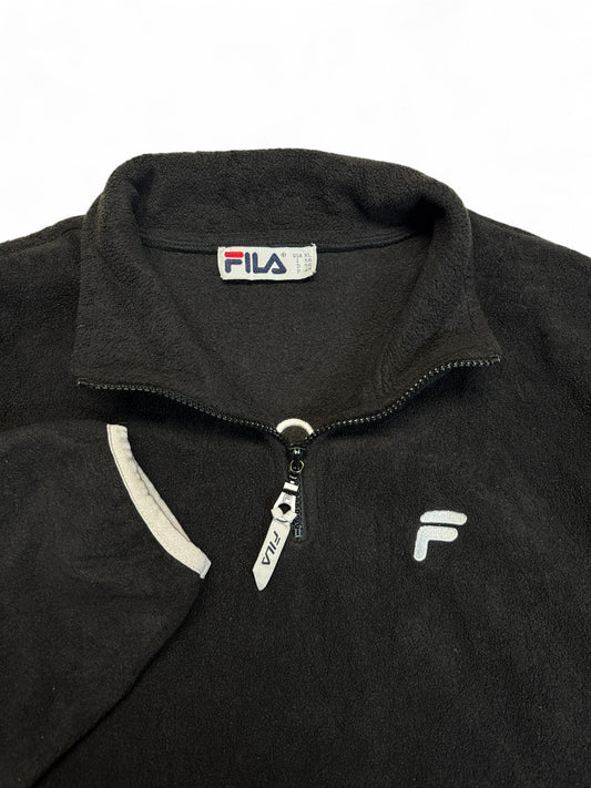 90s Fila 1/4-Zip Fleecejacke Spellout Schwarz XL