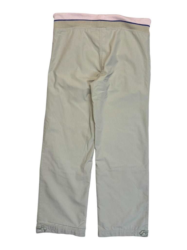Y2K Vibe mit rosafarbenem Bund, glänzender Pocket Flap und verstellbaren Details am Knöchel.
