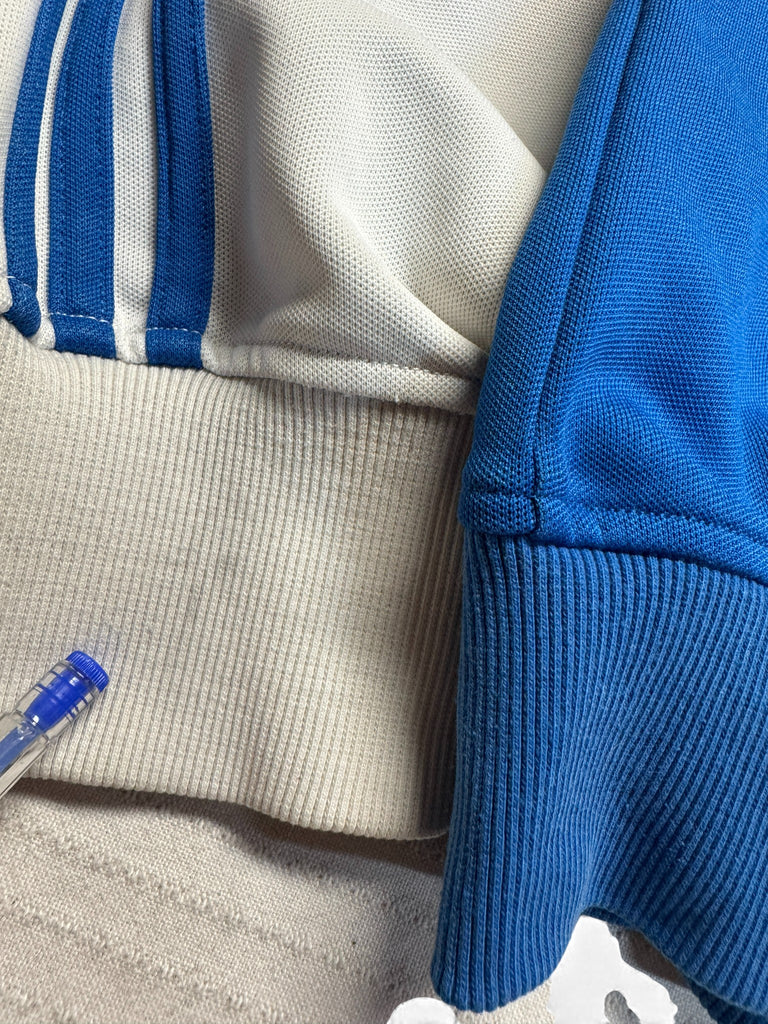 Kleiner Fleck und minimal ausgeblichen entlang der Faltkante, erkennt man gut auf den entsprechenden Detailfotos