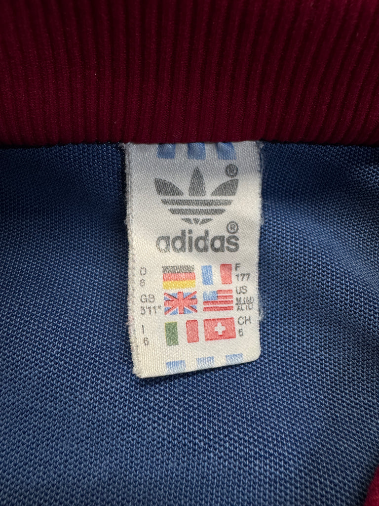 Template Adidas Trainingsjacke, wie sie auch von FCSB Bukarest getragen wurde, als der Verein 1986 in Sevilla den FC Barcelona besiegte und Europapokalsieger der Landesmeister wurde. Made in Yugoslavia