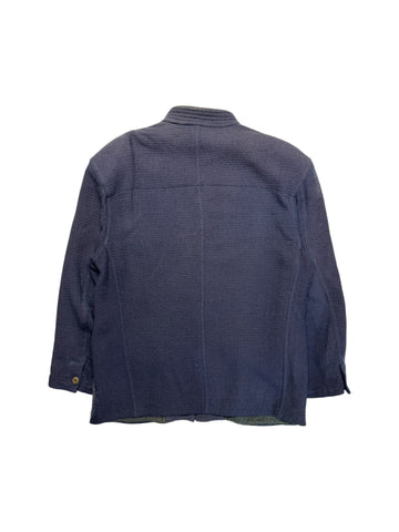 Leicht fusselig. Eine Brusttasche wurde abgetrennt.