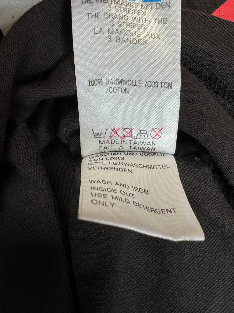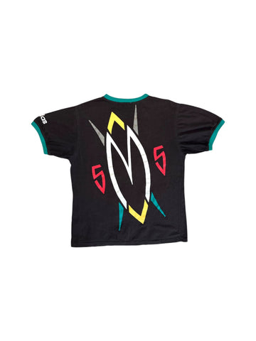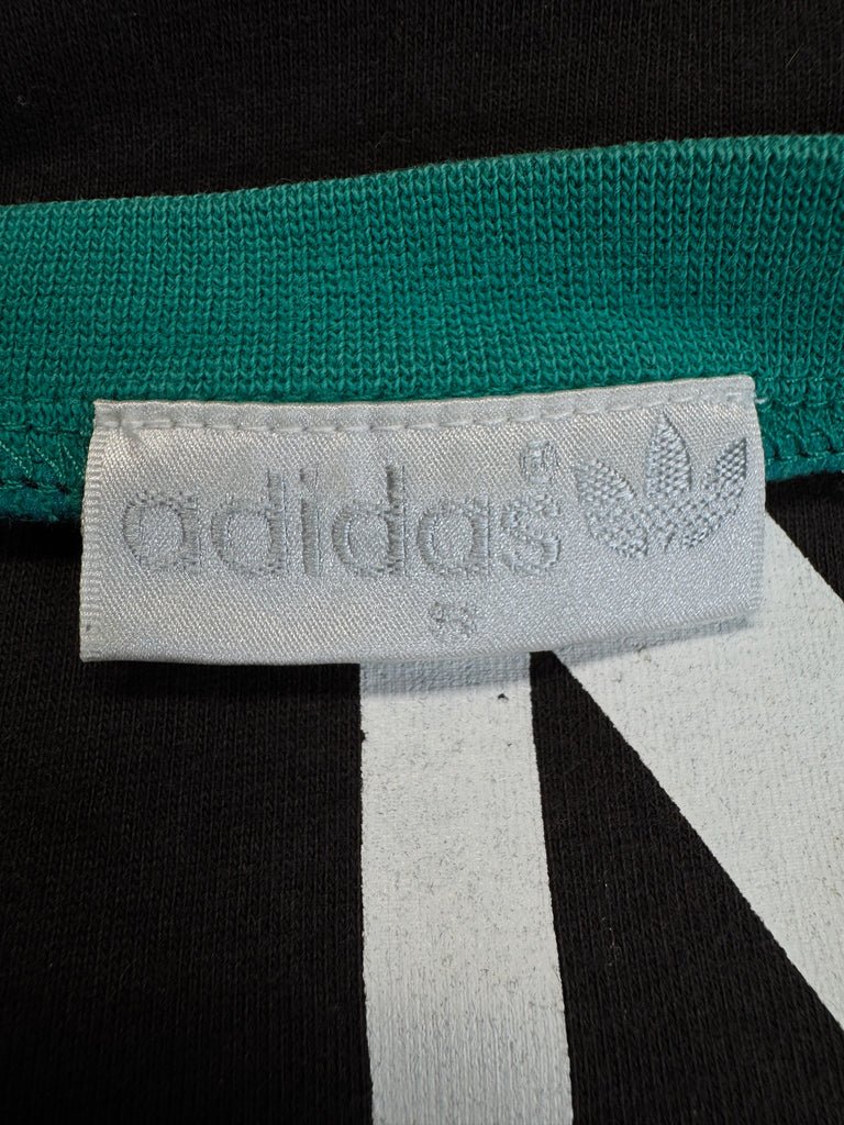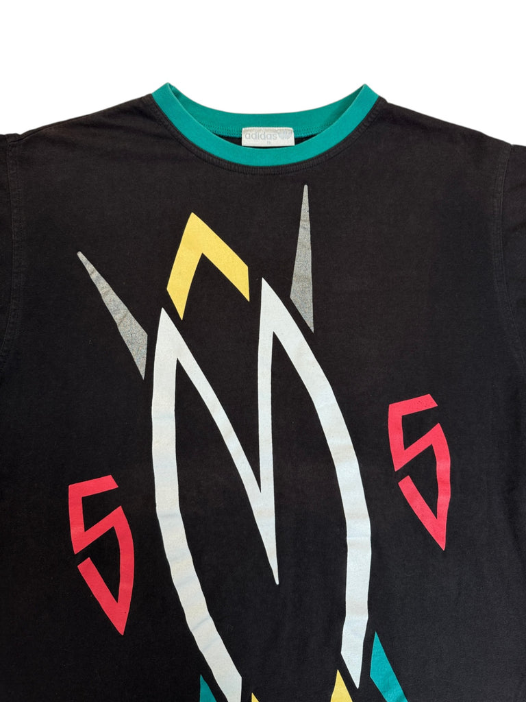 Adidas T Shirt aus der Dikembe Mutombo Signature Kollektion der frühen 90er mit Mutombo M Logo und seiner Trikotnummer 55, inspiriert von afrikanischen Mustern als Referenz zu seinen kongolesischen Wurzeln.