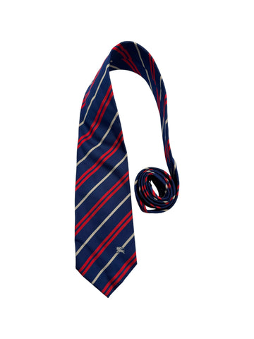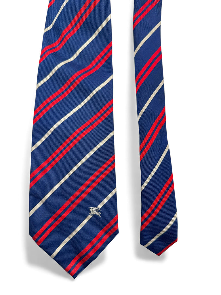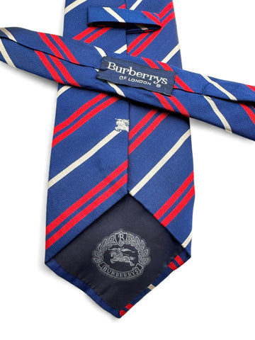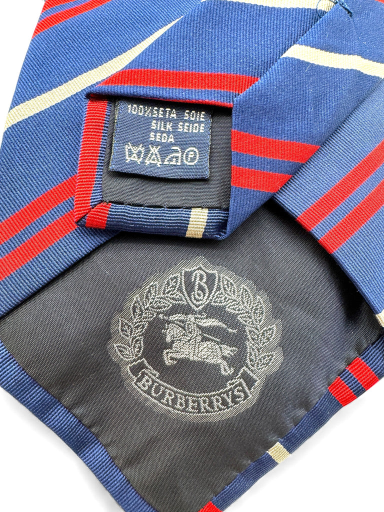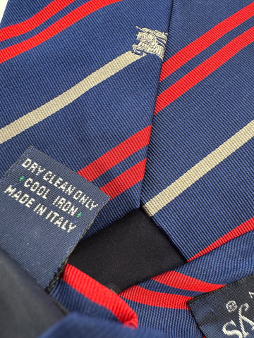 90s Burberrys Krawatte Navy Regimental Stripe Made In Italy Seide Dunkelblau