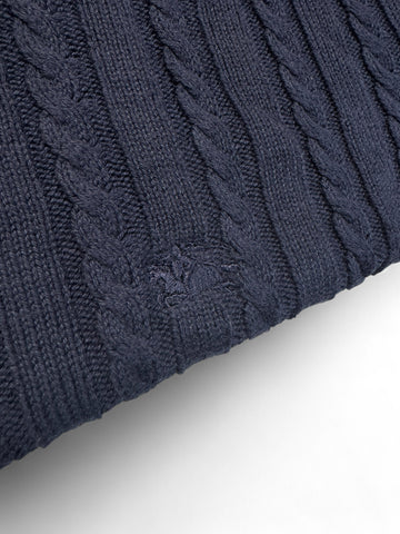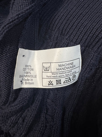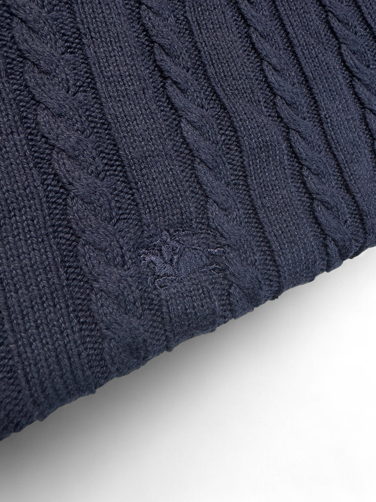 Dezent gesticktes Logo am Bund auf der Vorderseite. Made in England.