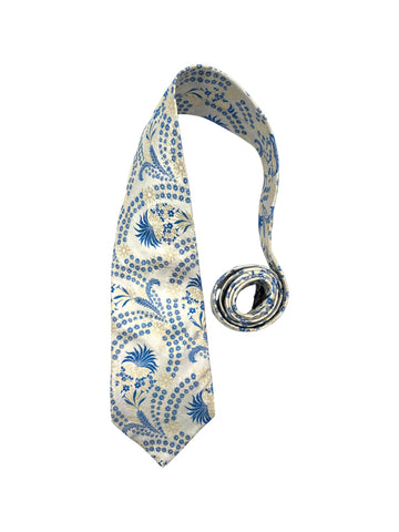 90s Gianfranco Ferré Krawatte Floral Pattern Seide Made In Italy Blau Weiß