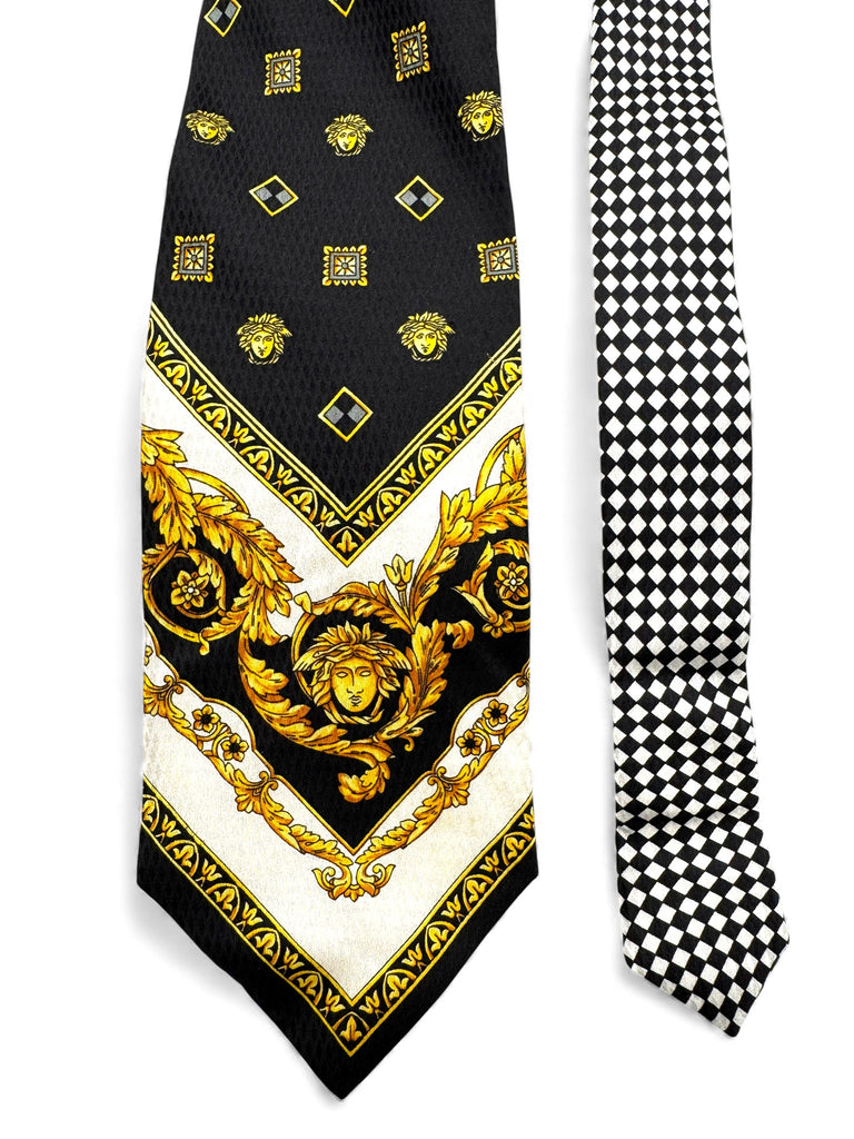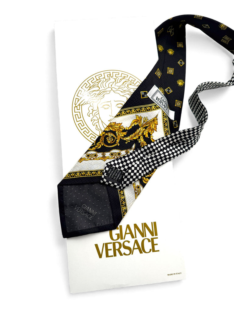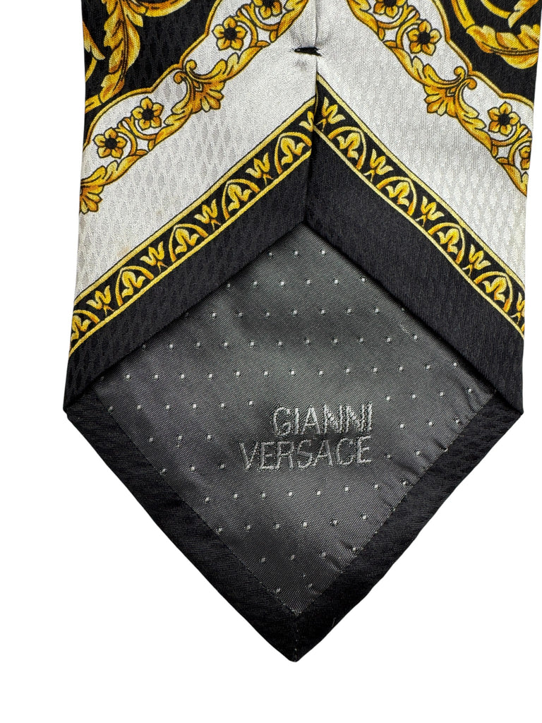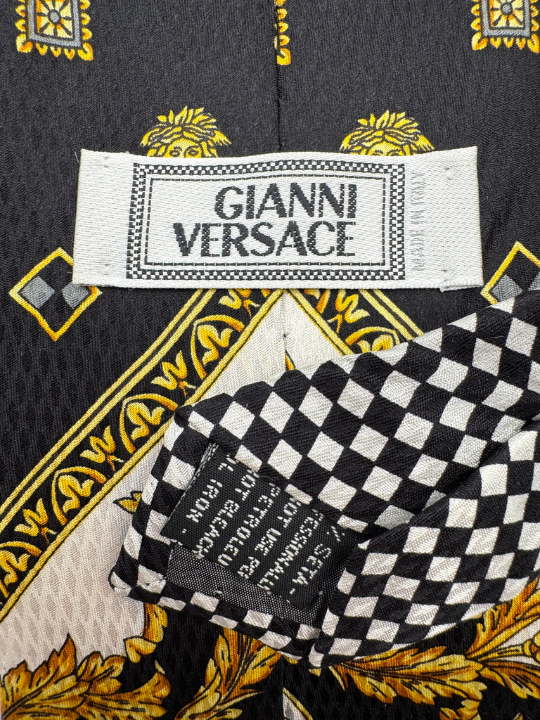 90s Gianni Versace Krawatte Medusa Pattern Seide Schwarz Gold