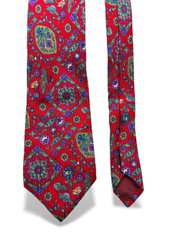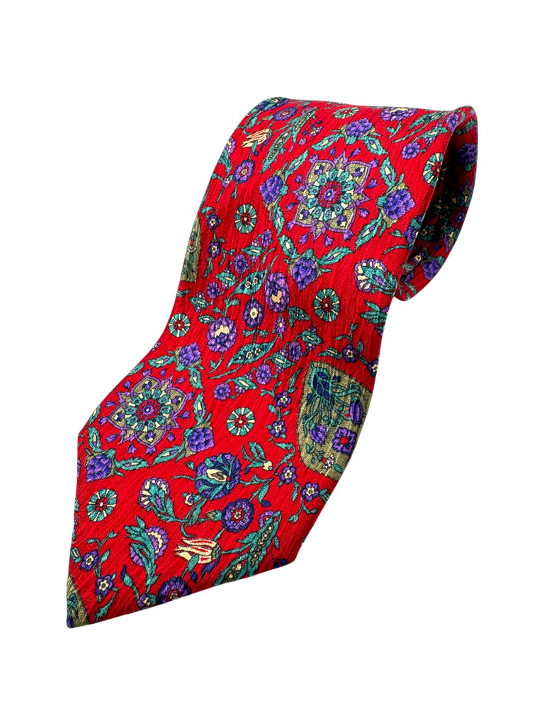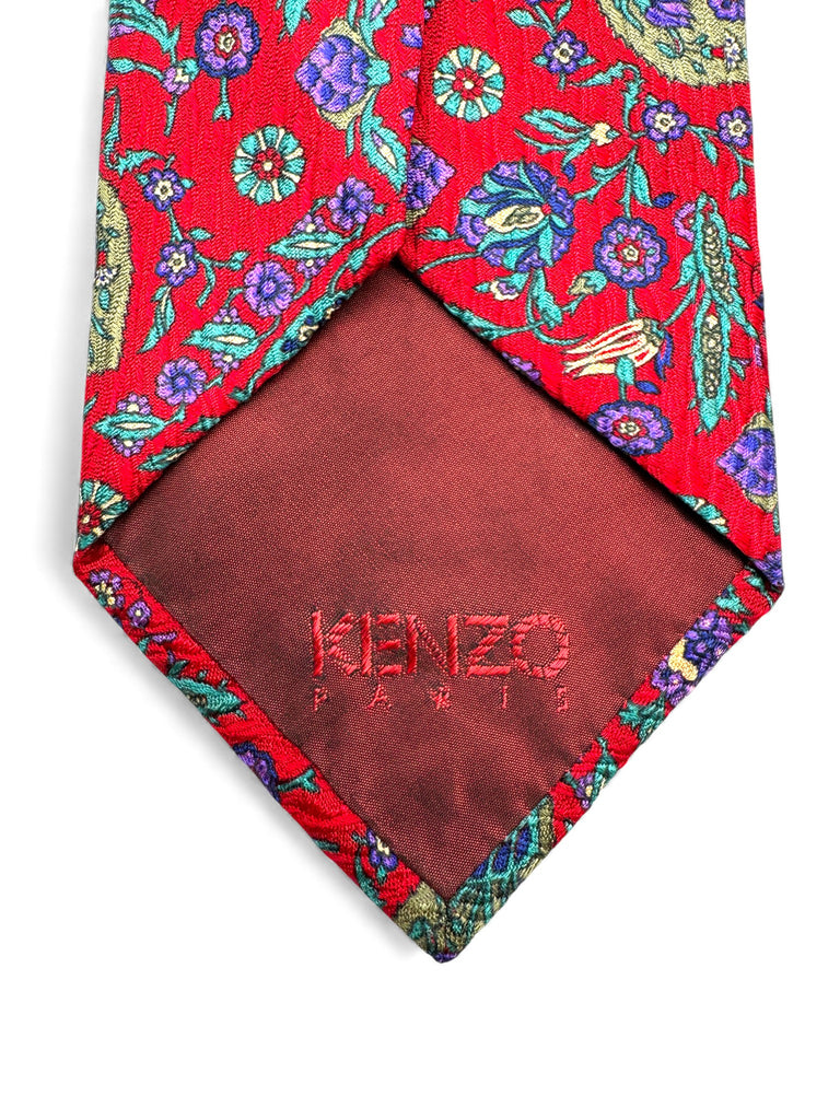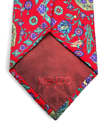 90s Kenzo Krawatte Floral Pattern Seide Rot