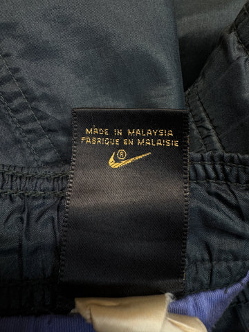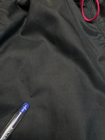 Die Hose hat diverse kleine Löcher und das Swoosh Embroidery hat sich teilweise gelöst. Die Gummizüge der Jacke sind nur noch teilweise elastisch, ansonsten ist die Jacke in einem sehr guten Zustand. Mängel sieht man im einzelnen auf den Detailfotos.