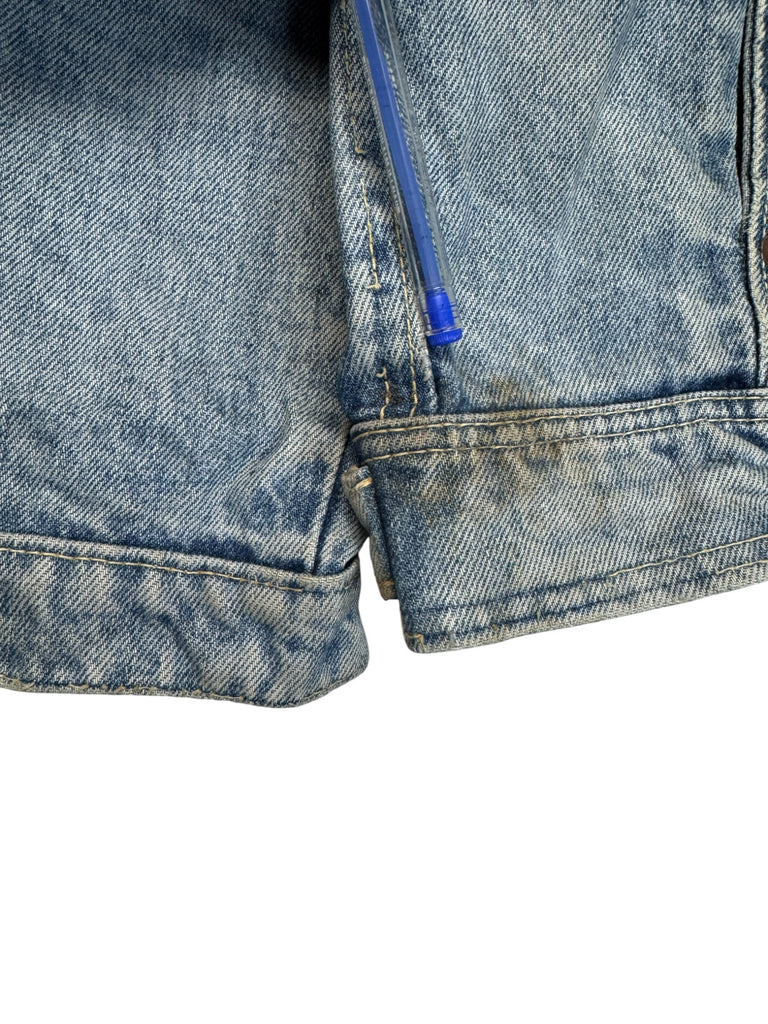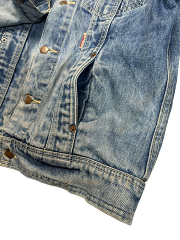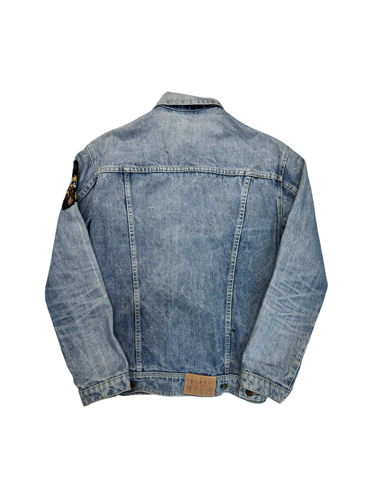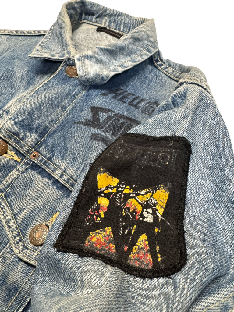 Einzigartige Patina, wie sie nur durch jahrelanges Tragen entstehen kann. Individuell mit "Helloween Sinner" beschrieben und einem Patch an der Schulter dekoriert.
