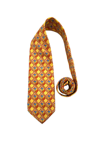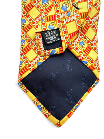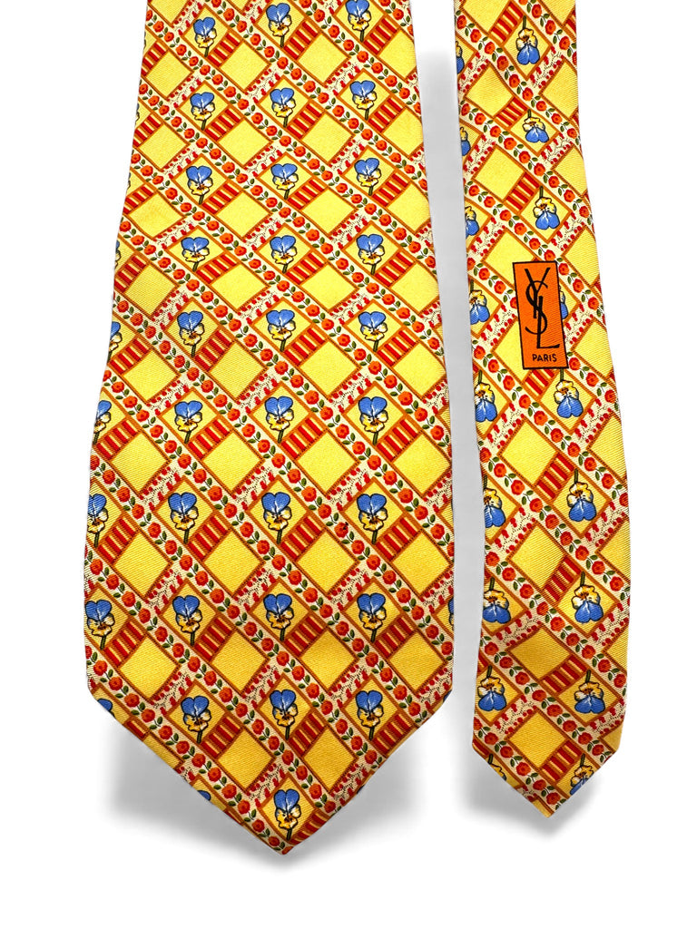 90s Yves Saint Laurent Krawatte Floral Print Made In Italy Seide Gelb Rot