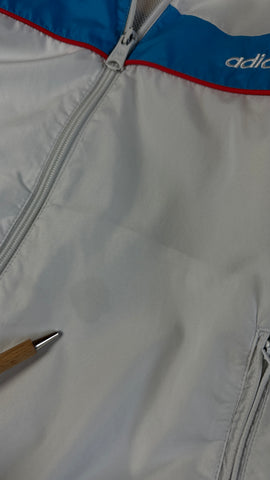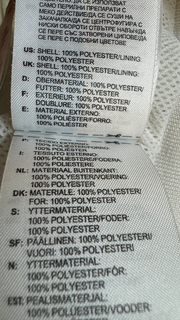 Kleiner Fleck am Reißverschluss und kleines Loch an der Schulter, erkennt man sehr gut auf den entsprechenden Detailfotos