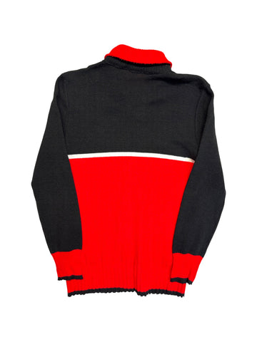 Etikett entfernt. Wahrscheinlich Polyacryl mit Wollanteil, typisch für die Zeit, relativ kratzig.